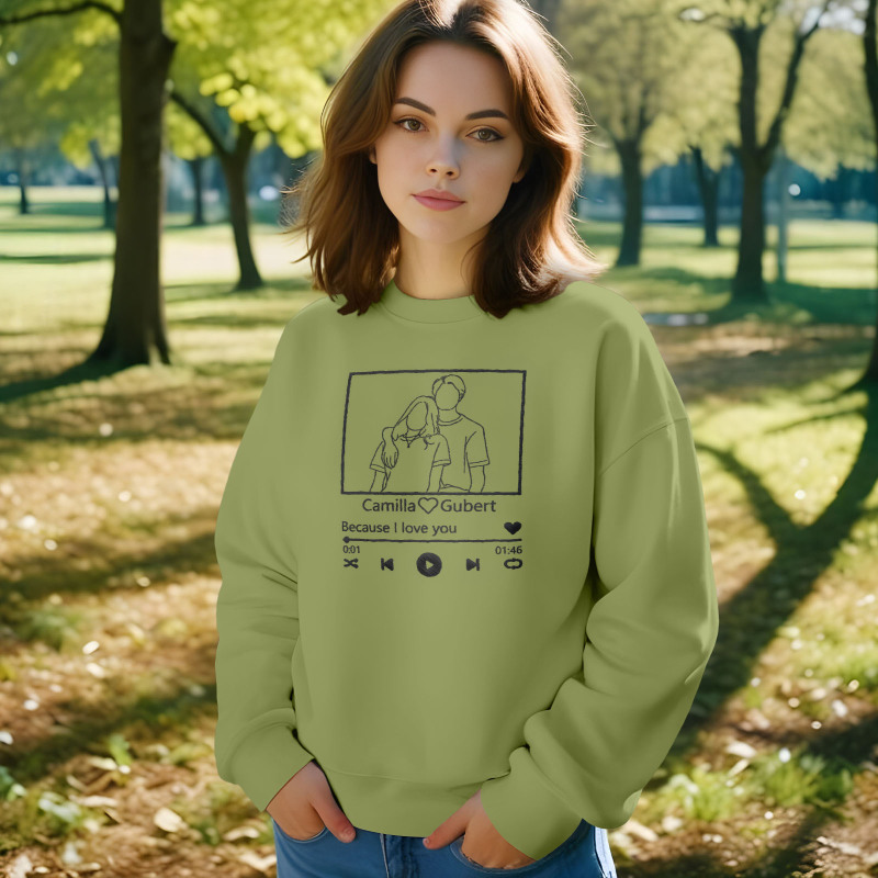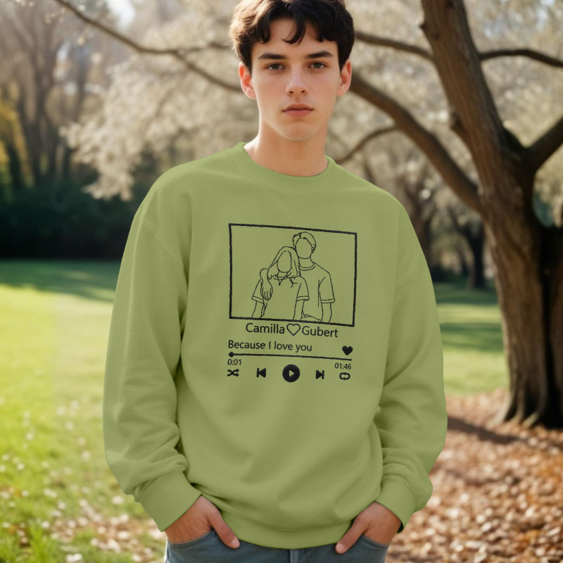 - Unique Design: Each sweatshirt is custom-made, blending the sentimental value of a portrait with the emotional connection of music, creating a truly unique piece.