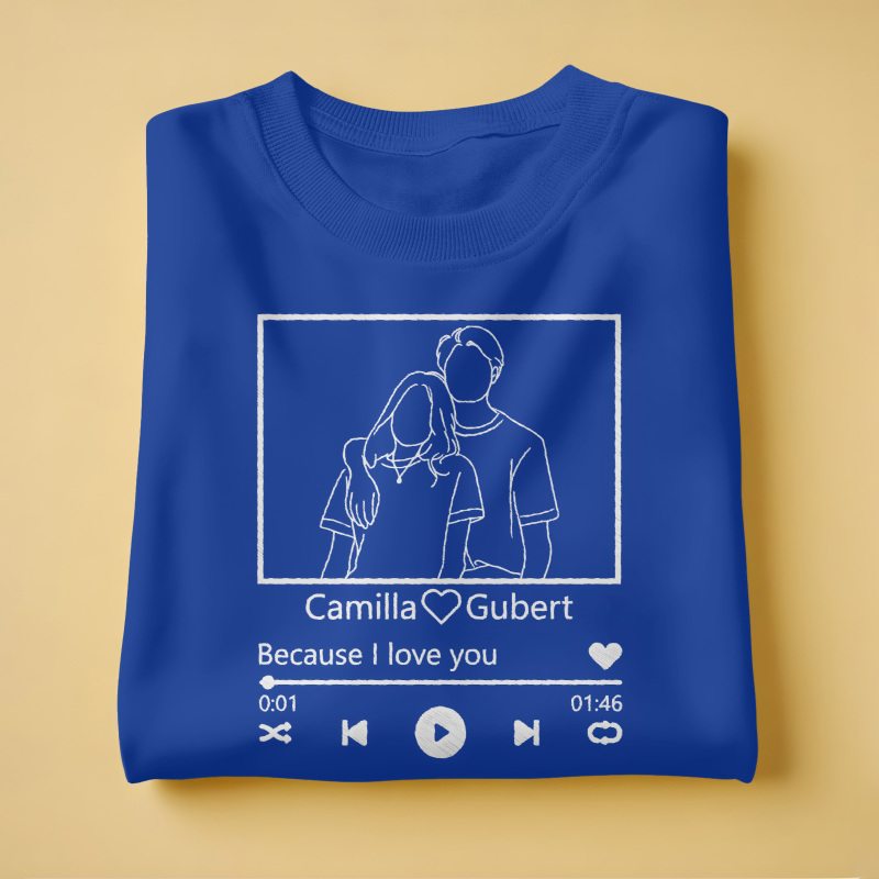 - Personalized Embroidery: Upload a photo for a custom portrait, and choose your favorite song or lyric to be elegantly embroidered beneath the image.
