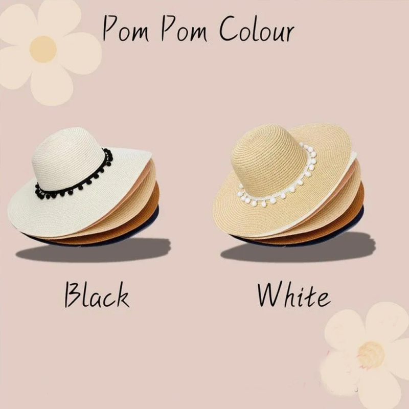 Stylish Beach pom pom Sun Hat with Custom Embroidery