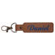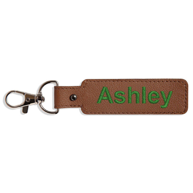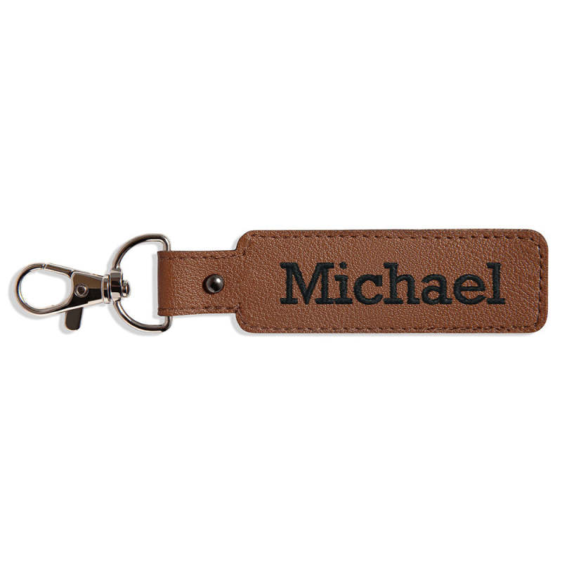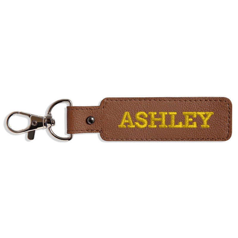 This keychain is made of embroidery. It is personalized and can be customized with a name or phrase of your choice.