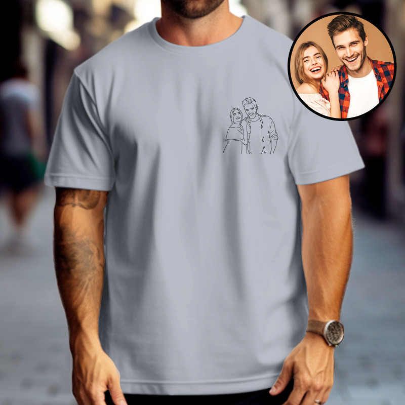Custom Photo Embroidered T-Shirt Personalized Portrait Shirt Gift for Dad