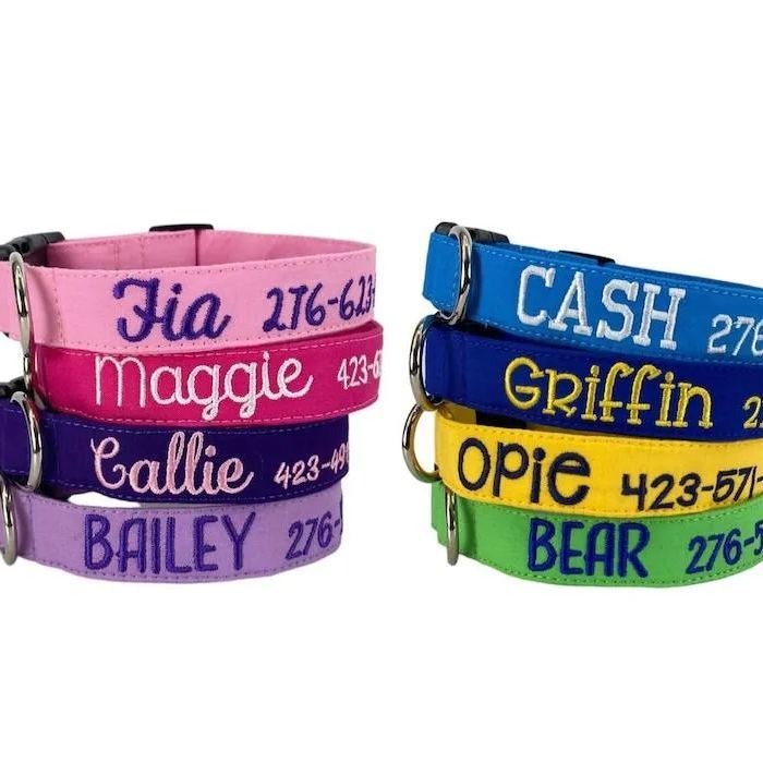 Dog Collar, Embroidered Dog Collar, Personalized Dog Collars, Custom Dog Collars, Dog Collar with Name and phone number, dog id tag
