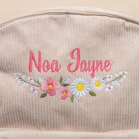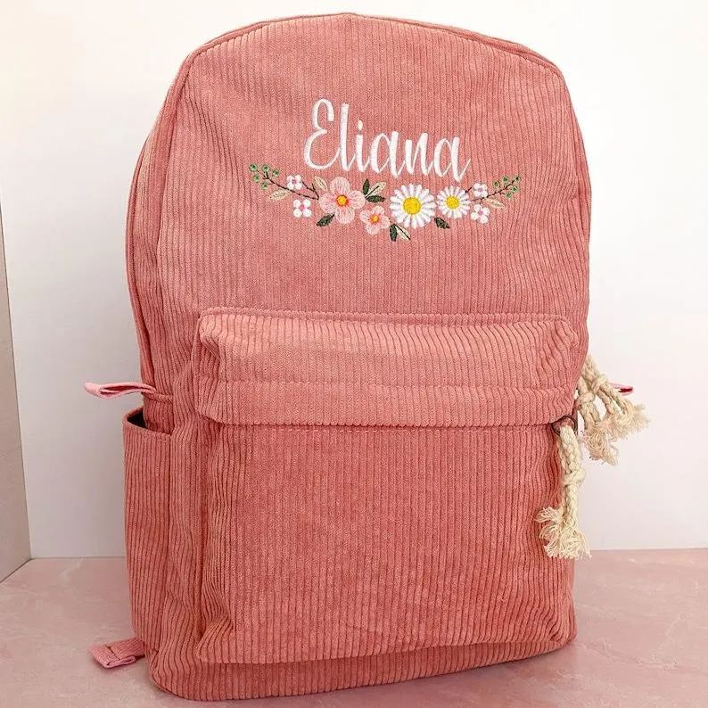 Our personalized embroidered backpacks are made with the highest quality materials and and come with numerous thread and flower frame color selections to best fit your vision!