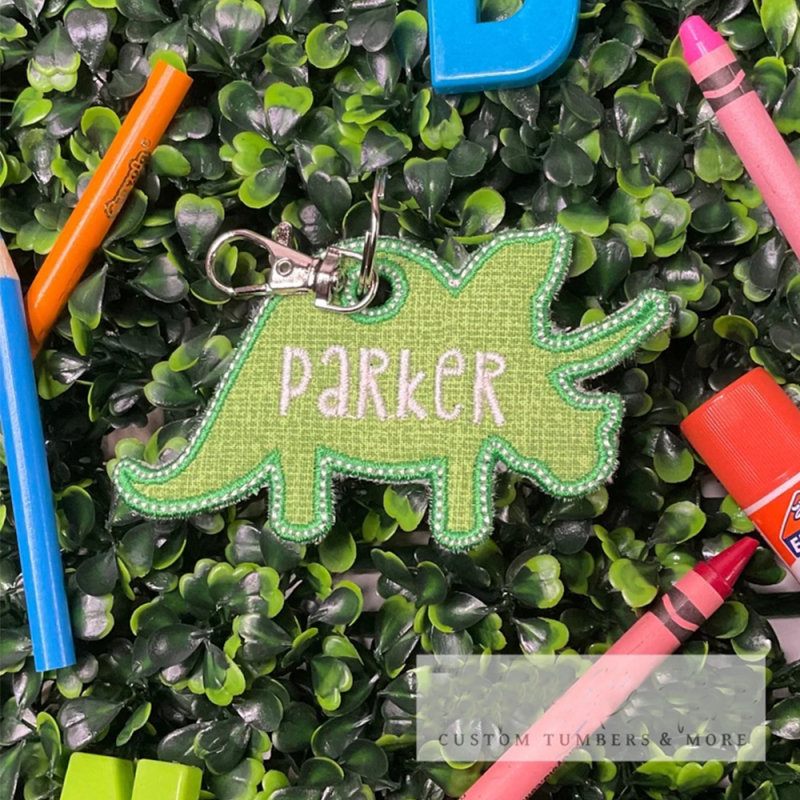 Embroidered Leather Backpack Tag | Green Dino Bag Tag | Back to School Name Tag | Keychain Key Fob | 1st Grade Kindergarten Gift