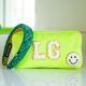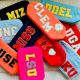 Colors from starting top left: black, white, hot pink, baby pink, purple, baby blue, mint, and neon yellow.