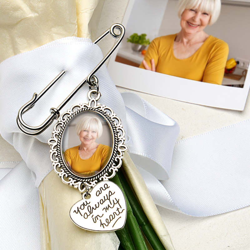 This Personalized Angel Wings Pin Brooch is the perfect way to add a special touch to a wedding bouquet or to serve as a memorial gift for a bride. It can be personalized with a photo, making it a sentimental and unique accessory. A thoughtful and heartfelt addition to any wedding or special occasion.