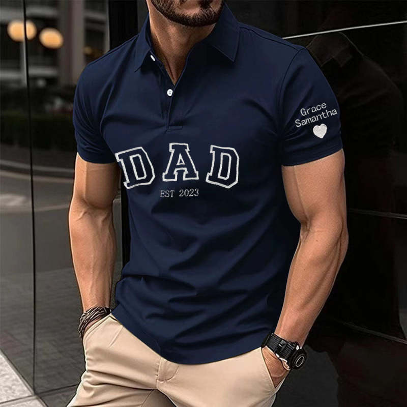 Personalized Dad Est Polo Shirt with Child's Name on Sleeve