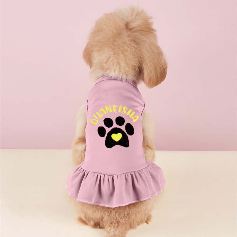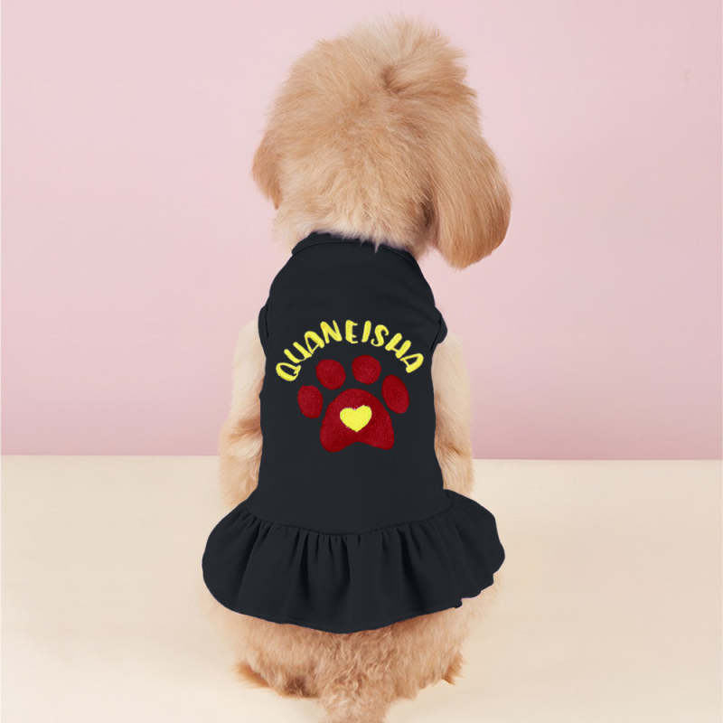This personalized pet dress is the perfect gift for any pet lover. Featuring a fun embroidery design and the pet's name, it adds a unique touch to your furry friend's wardrobe. Made with high-quality materials, it's both stylish and comfortable for your pet to wear. Show your love for your pet with this special dress.