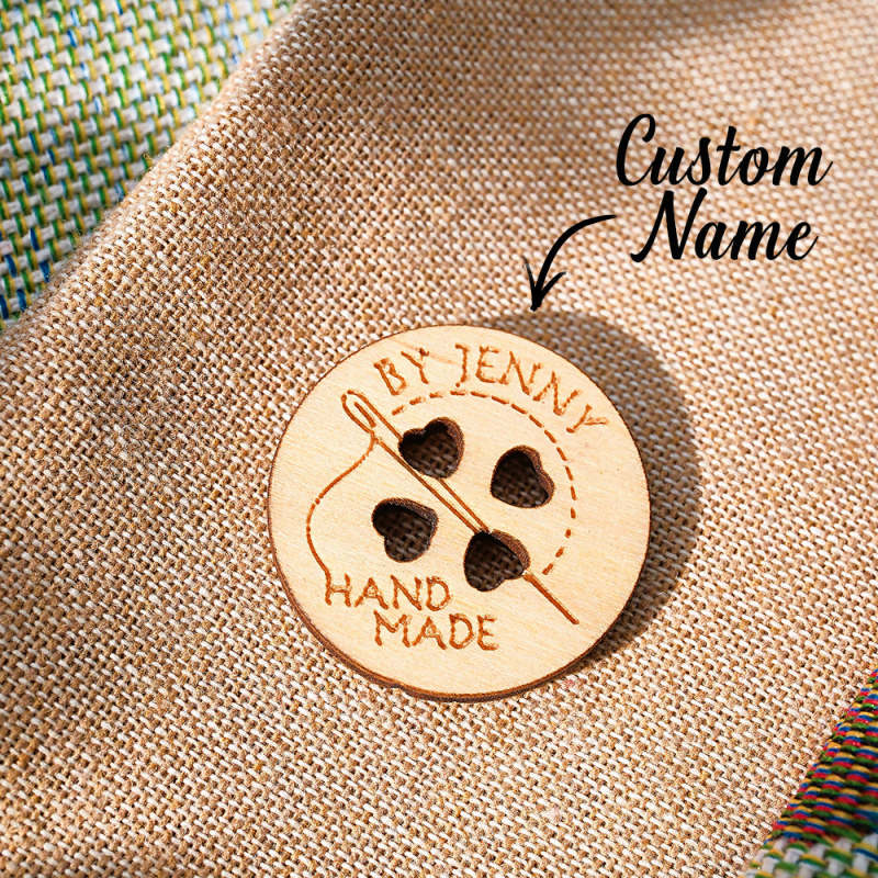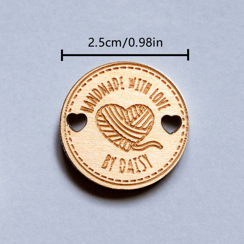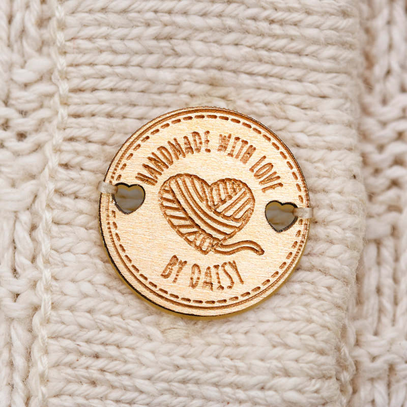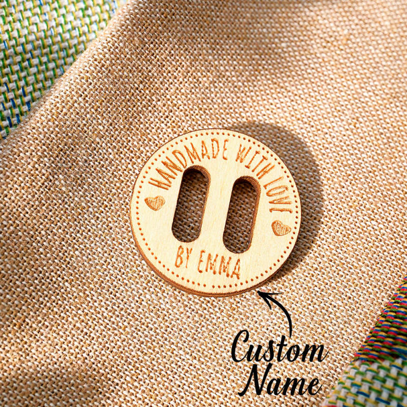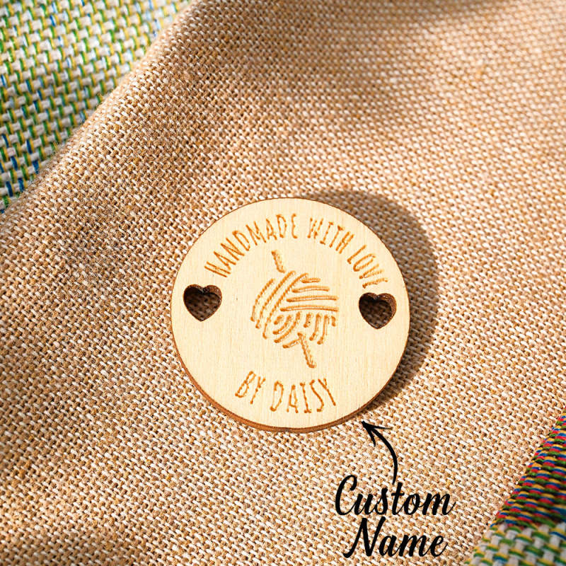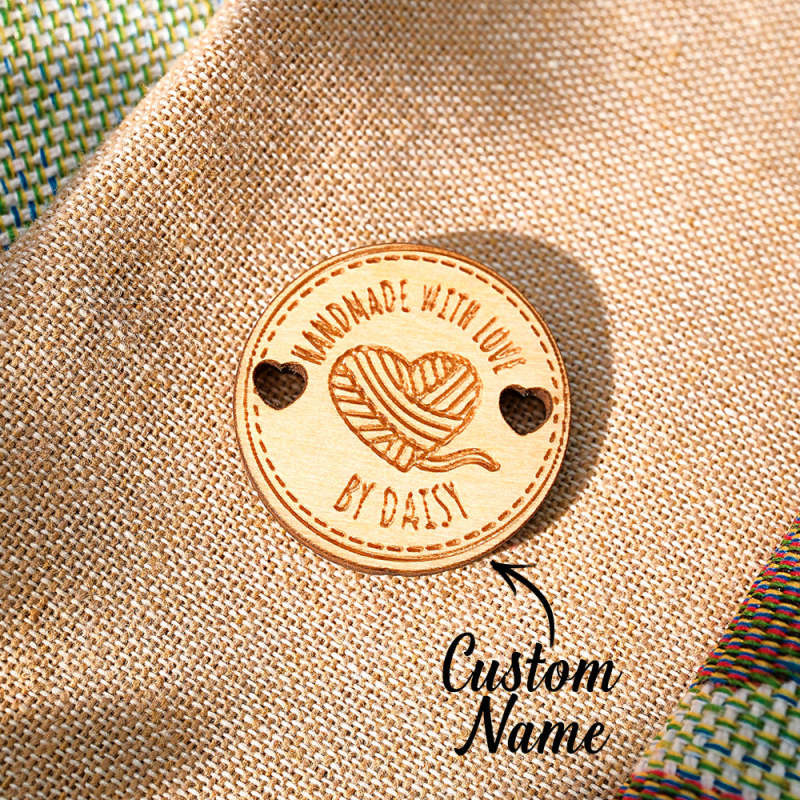 Personalized Handmade with Love Wooden Buttons Set of 15 Clothing Labels Gift for Mother Grandma Knitting Crocheting Lovers