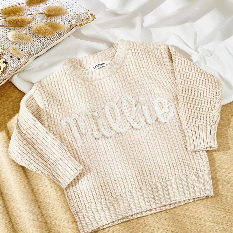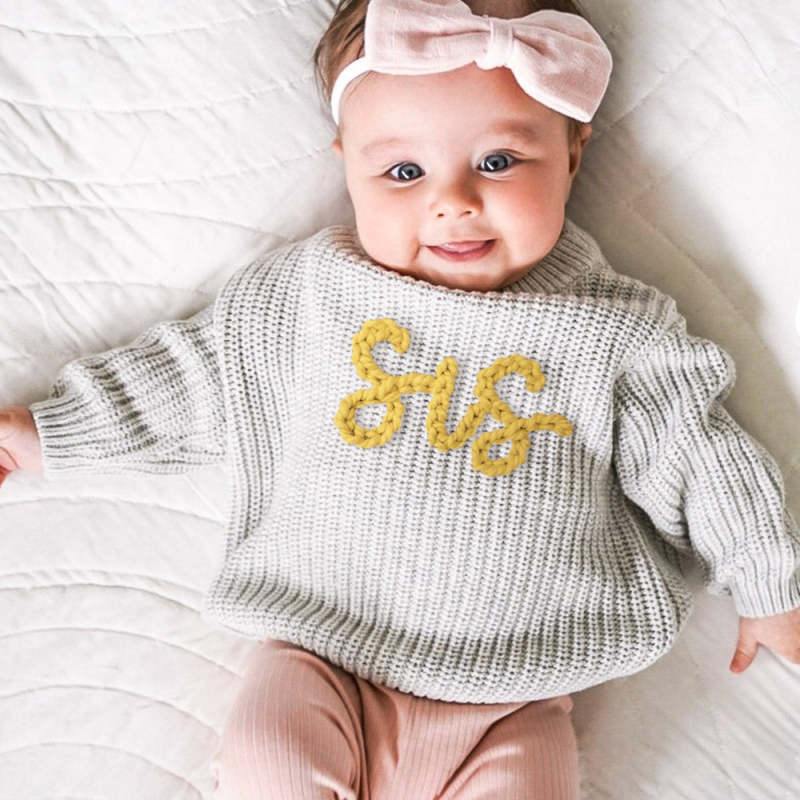 This personalized embroidered chunky knit sweater makes a perfect baby shower, birthday, or any occasion gift for a kids!