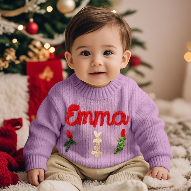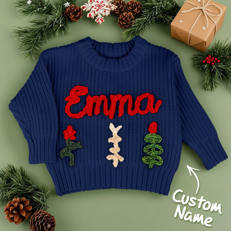 Personalized Sweaters Custom Name Handmade Embroidered Sweater for Kids Christmas Gift