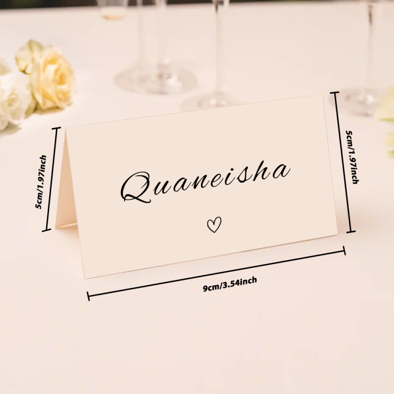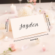 These personalized place name cards are a minimal and elegant addition to any wedding table decor. With each name customized, it adds a personal touch to your special day. Made of high-quality materials, these place cards are durable and long-lasting. Make your guests feel special with these thoughtful details.