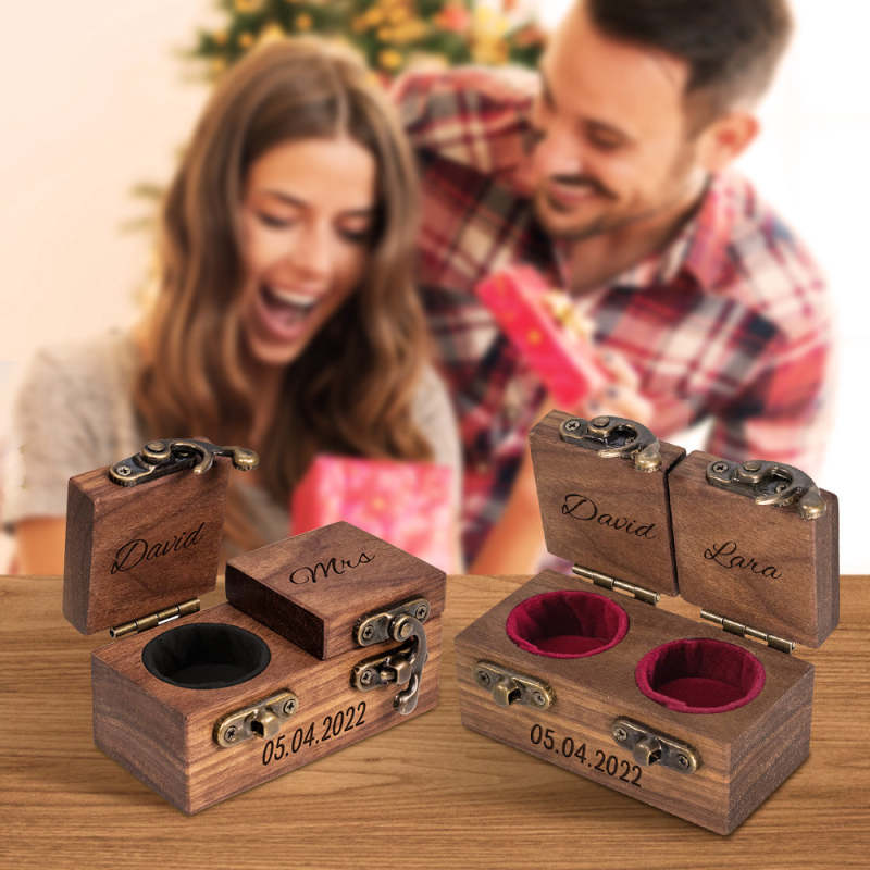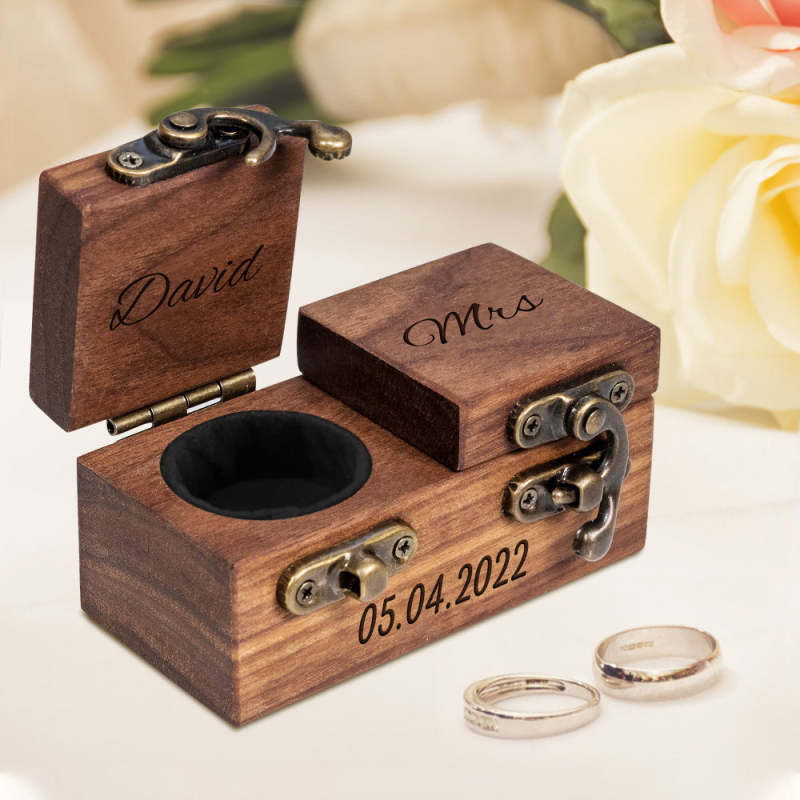 This wooden ring box is designed specifically for proposals, engagements, and storing rings. It is made of high-quality wood and has a beautiful finish. The box is spacious enough to fit two rings. You can engrave a personalized name and make it a unique memory in the future!