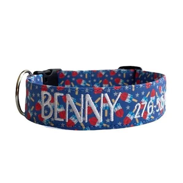 Popsicle Dog Collar, Embroidered Dog Collar, Personalized Dog Collar, Custom Dog Collar, 4th of July Collar, Tie Dye Dog Collar