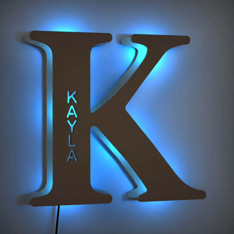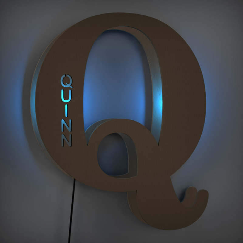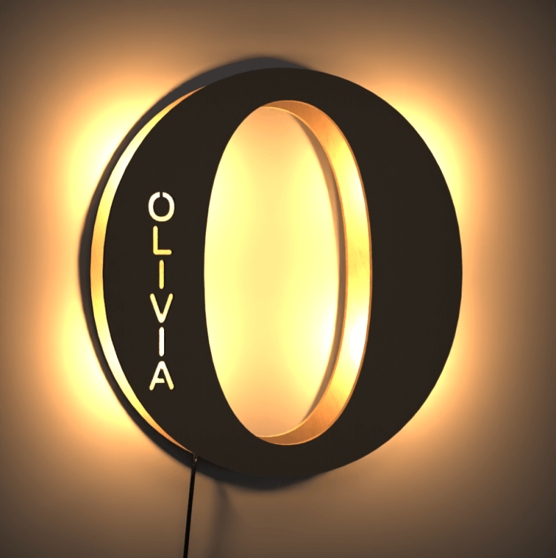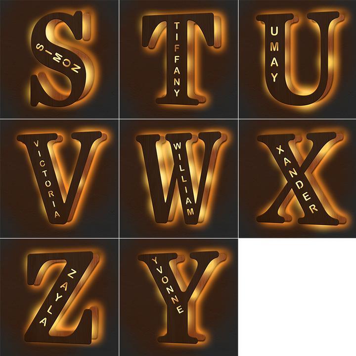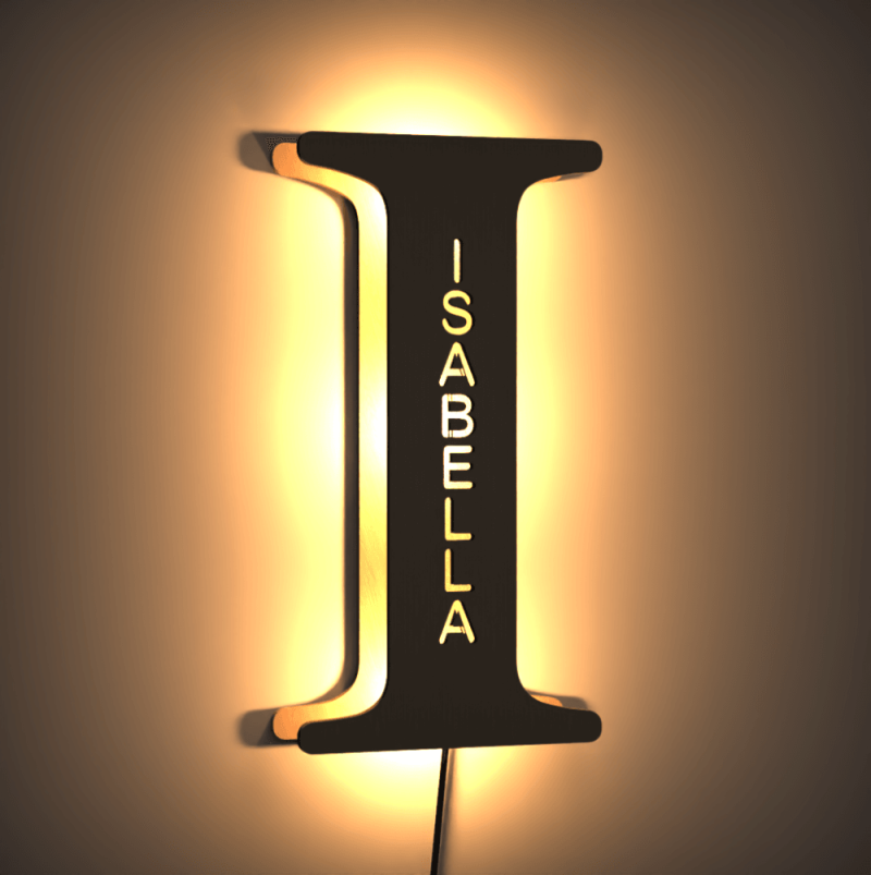 - This lovely and creative initial lamp features your name in cutouts and can be attached to the wall.